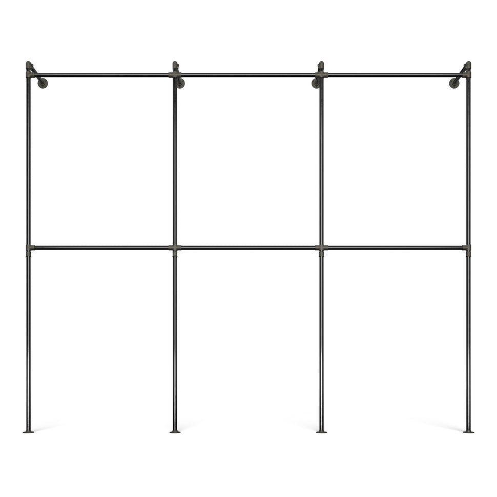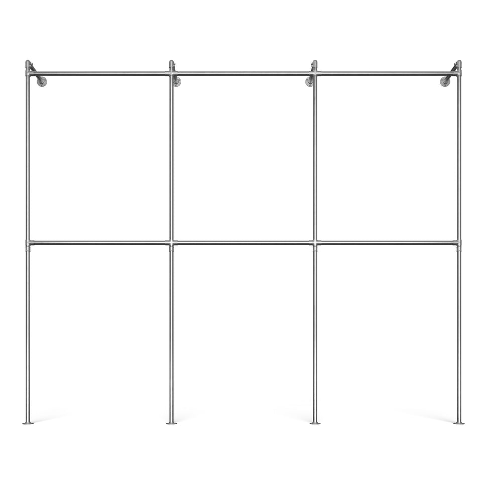 Width: The width is dependent on which variant you choose. You can choose different options below. Please note, that the numbers below are showing the pipe lengths that we are using for your rack, not the external measurements. You will therefore have to add them together and add approximately 20 cm for the total width.