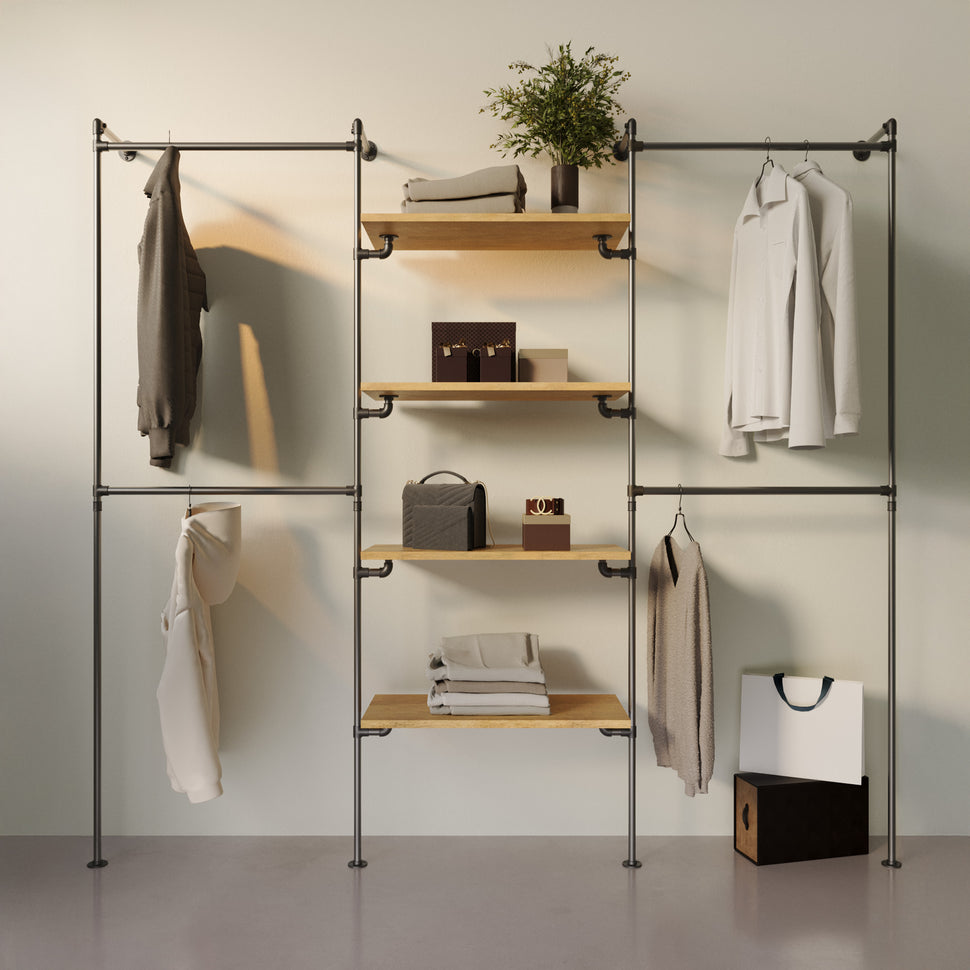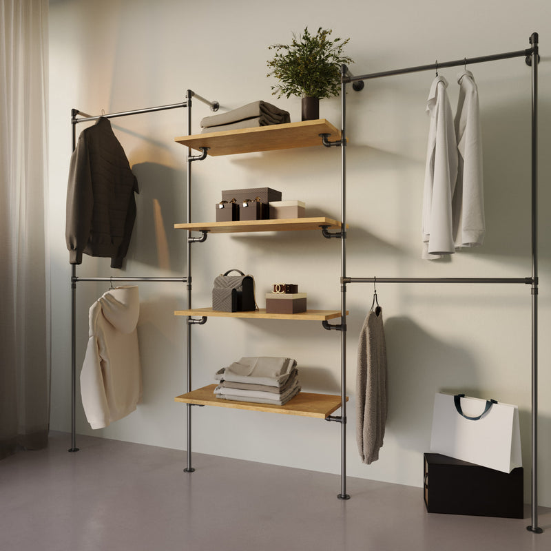 At RackBuddy, we’re a Danish design company built to stretch the standards of storage solutions. Our mission is to provide you with a wardrobe system that doesn’t just take up space—it stretches your space, adapts to your unique needs, and inspires your organization journey. With The Walk-In 3 row wardrobe system - (2 rails / 4 shelves/ 2 rails), we deliver a tailored and affordable solution that combines durability with Scandinavian design aesthetics, perfect for urban spaces and busy lifestyles.