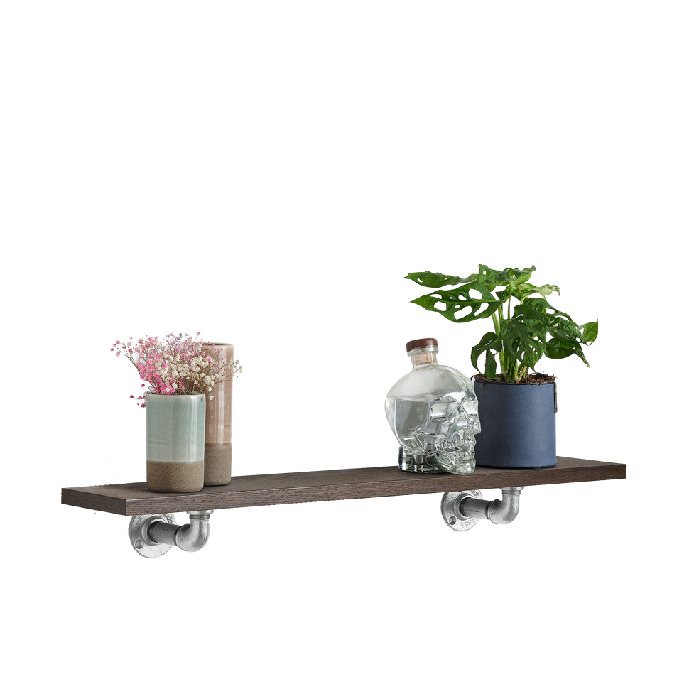 This sleek shelf features traditional, rustic shelf supports made from genuine iron pipes (RackBuddy Johnny - stylish shelf support - made of iron pipe), infusing a hint of industrial charm into your décor. Whether it’s used in the living room, hallway, kitchen, or bedroom, our shelf provides custom-fit style for your unique environment.