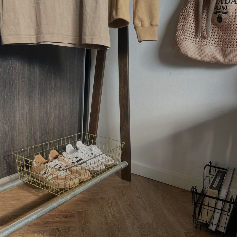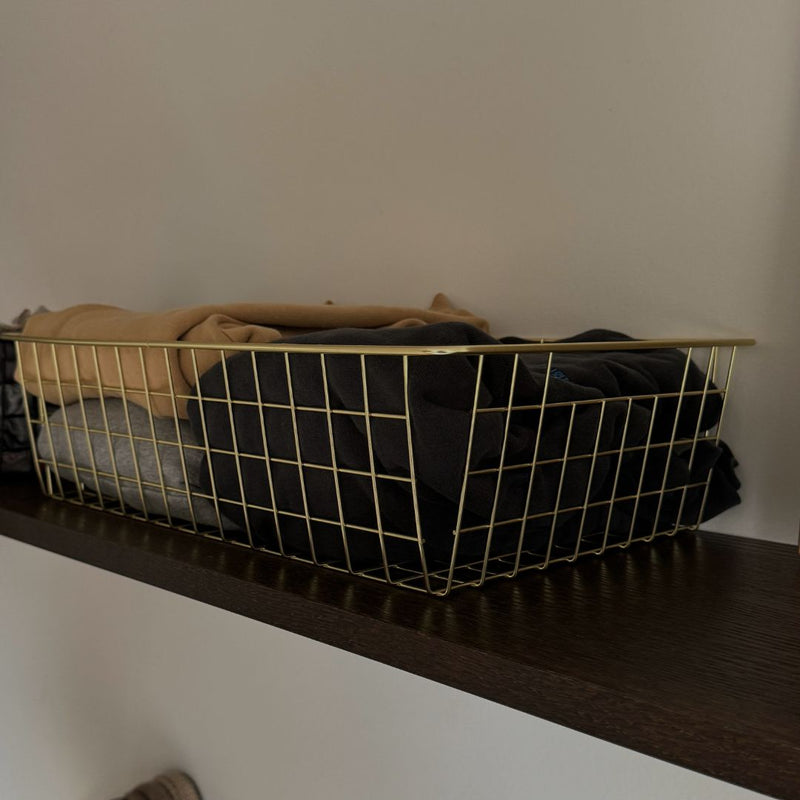 The RackBuddy basket for underwear & socks in gold or black - Big is designed to fit seamlessly on top of shelves or integrated into your clothing rack, like our renowned RackBuddy Frame Collection or RackBuddy Billy. With a thoughtful design, each basket features the following dimensions: