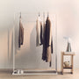 The Frame Georgia rack is more than just a piece of furniture; it’s a statement. Its sleek, matte white iron frame provides a perfect backdrop for your clothes, making them pop against its subtle industrial design. Here's why you'll love it: