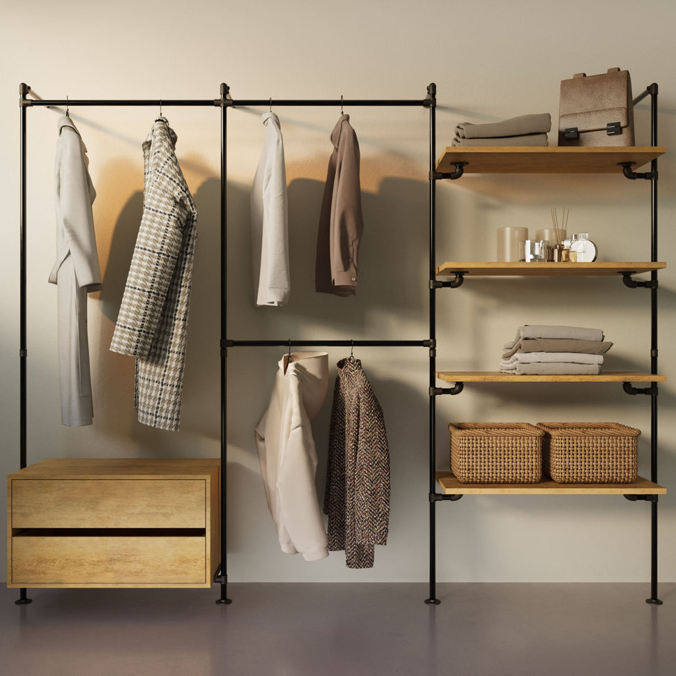 Customize your storage, your way with The Walk-In 3 Row Wardrobe System - (1 rail / 2 rails / 4 shelves)