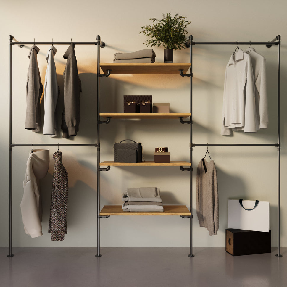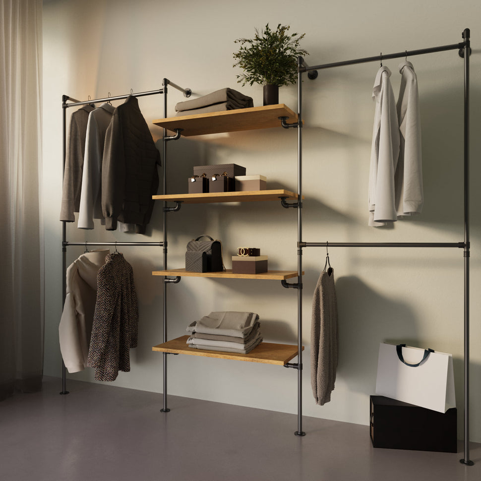 At RackBuddy, we’re a Danish design company built to stretch the standards of storage solutions. Our mission is to provide you with a wardrobe system that doesn’t just take up space—it stretches your space, adapts to your unique needs, and inspires your organization journey. With The Walk-In 3 row wardrobe system - (2 rails / 4 shelves/ 2 rails), we deliver a tailored and affordable solution that combines durability with Scandinavian design aesthetics, perfect for urban spaces and busy lifestyles.
