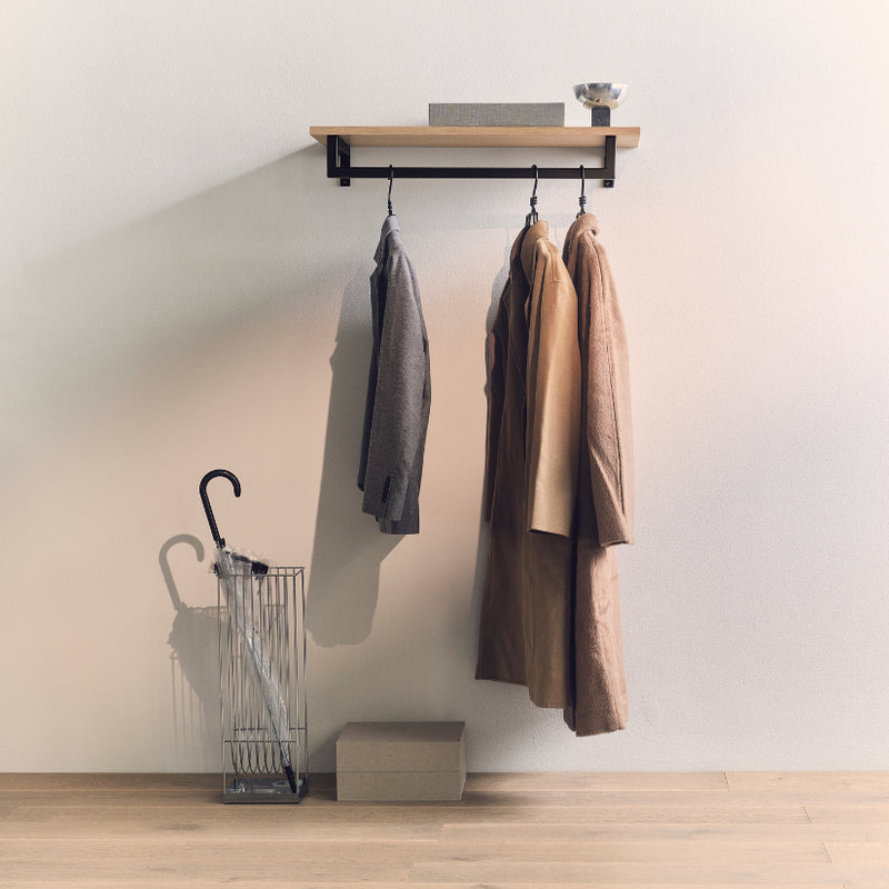 We believe that storage solutions should stretch to meet the unique challenges of your space. With our Frame Marlow - Wall-mounted clothes rail with shelf, you gain a solution that is both sustainable and chic. Whether you’re outfitting a walk-in closet, brightening up an entryway, or curating a stylish boutique display, our design brings order and elegance to every corner of your space.
