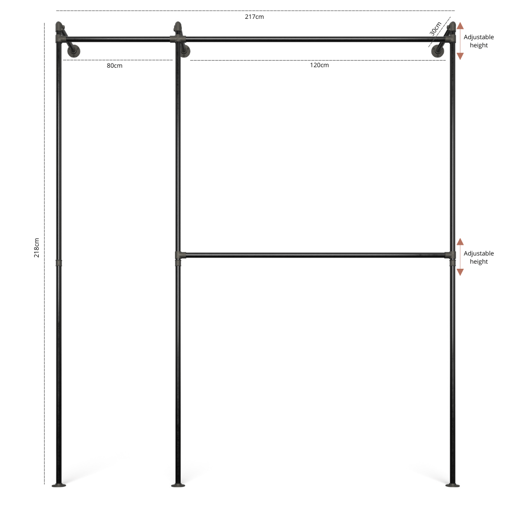 Custom-fit options: Choose different pipe lengths and add approximately 15 cm to the total for the perfect width to suit your needs.