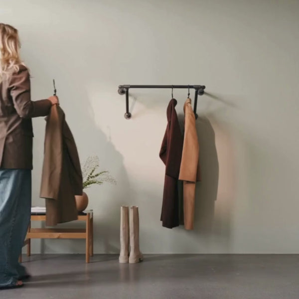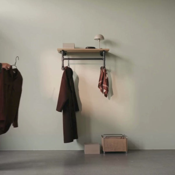 Sommelier’s interior is equipped with our wooden shelves in dark pine, that create an amazing bottle display and the access to them is both practical and super stylish. Black industrial pipes made of waterpipes mounted to the wall adds a unique touch to the design and leaves plenty of space on the floor for boxes and other accessories. The wine storage is using the full space but still feels spacious.