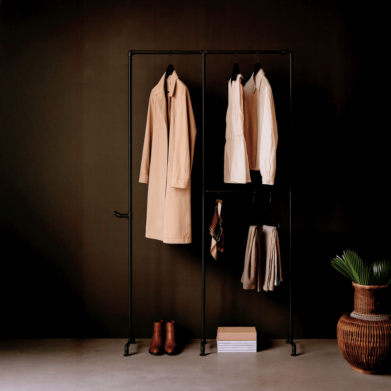 Whether you’re furnishing a compact flat, a creative studio or an open wardrobe zone, Wild Bill Elliot stands apart. The matte black iron‑pipe structure creates a cool urban aesthetic while putting your garments front and centre.