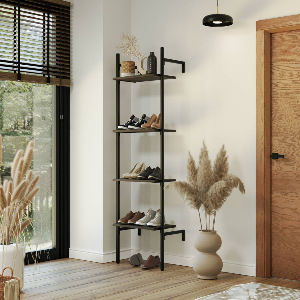 Sturdy materials: Built with a black powder-coated frame and classic oak veneer shelves, promising durability and timeless design.