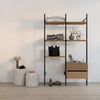 Two rows of storage: Enjoy a balance of open shelves and concealed drawers that create a harmonious blend of display and hidden storage.