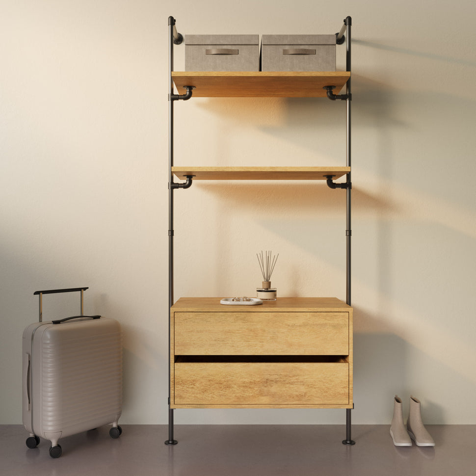 Stretch your space with The Walk-In with dresser - (2 shelves + 1 dresser)